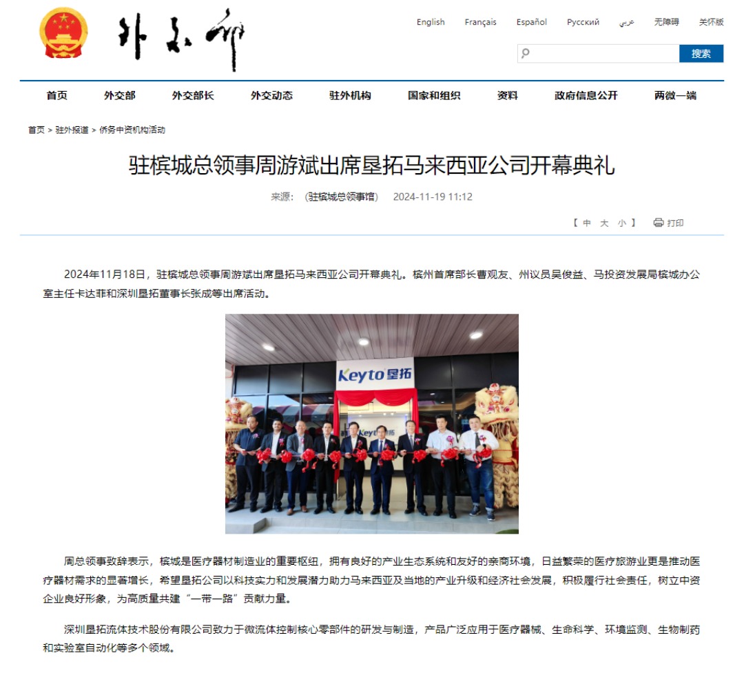 2024年11月18日,在全球貿(mào)易充滿機遇與挑戰(zhàn)的時代,深圳市墾拓流體技術(shù)有限公司旗下子公司Keyto MY Sdn. Bhd,在風(fēng)景秀麗的馬來西亞檳城 · 峇都加灣盛大開業(yè),標(biāo)志著墾拓流體在全球化戰(zhàn)略布局上邁出了堅實的一步,正式啟用海外首座尖端流體技術(shù)制造基地。