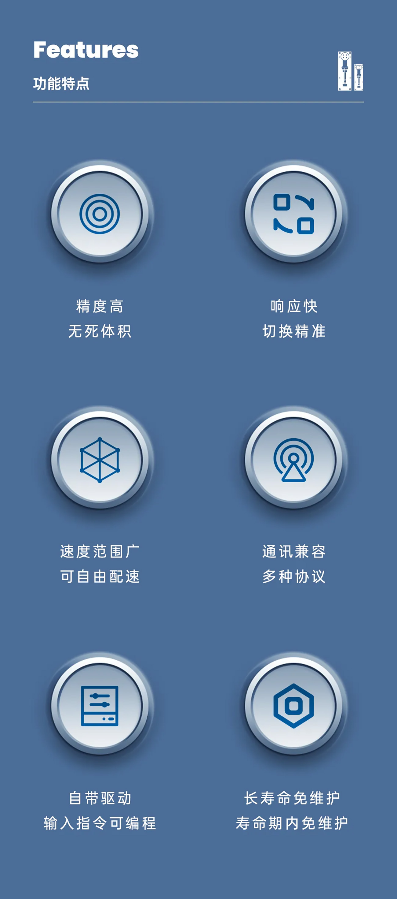 標(biāo)準(zhǔn)模式6000 step/60mm,微步模式48000 step/60mm |